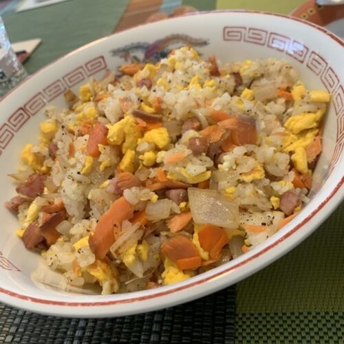 自分で自炊する時、おそらくもっとも多く調理されているメニューだろう・・・炒飯。炒飯というよりは焼き飯と言ったほうがいいかもしれない。それと最近よくやる簡単に作れる牡蠣醤油ベースのスープ。 ちなみに、写真の焼飯は、ラーメン丼によそられているが…