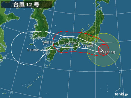 日本列島の関東以西を東から西に横断しそうな台風12号。こうなると何かいつもの台風と違うことが起こるのか?女子プロゴルフ、山梨でやっているが、結構降っている。日本橋浜町はそれほどでもない。かぜは出てきたけど(14時現在*1)